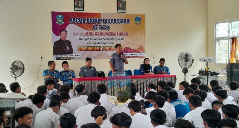 Grabagan Tuban - Dalam upaya memperkuat kesadaran dan peran aktif komunitas sekolah dalam mencegah penyalahgunaan narkoba, SMAN 1 Grabagan menggelar kegiatan Focus Group Discussion (FGD) bertajuk "Merajut Kekuatan Komunitas Pencegahan Narkoba", bekerja sama dengan Badan Narkotika Nasional (BNN) Kabupaten Tuban, Senin (10/11/2025).